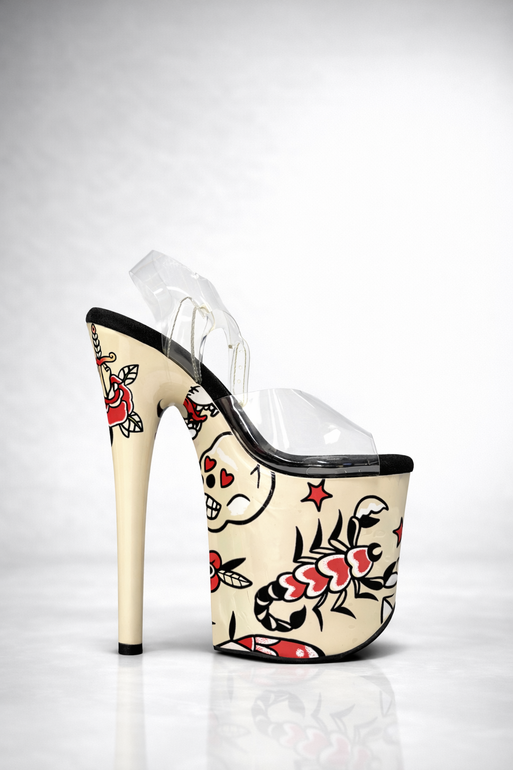 Bold, classic tattoo-flash vibes… but make it heels. Love & Venom is printed on clear vinyl, so your heel color still shows through while the artwork pops on top. Perfect for performers, photoshoots, or anyone who wants a quick “new shoe” moment without buying a new pair.
